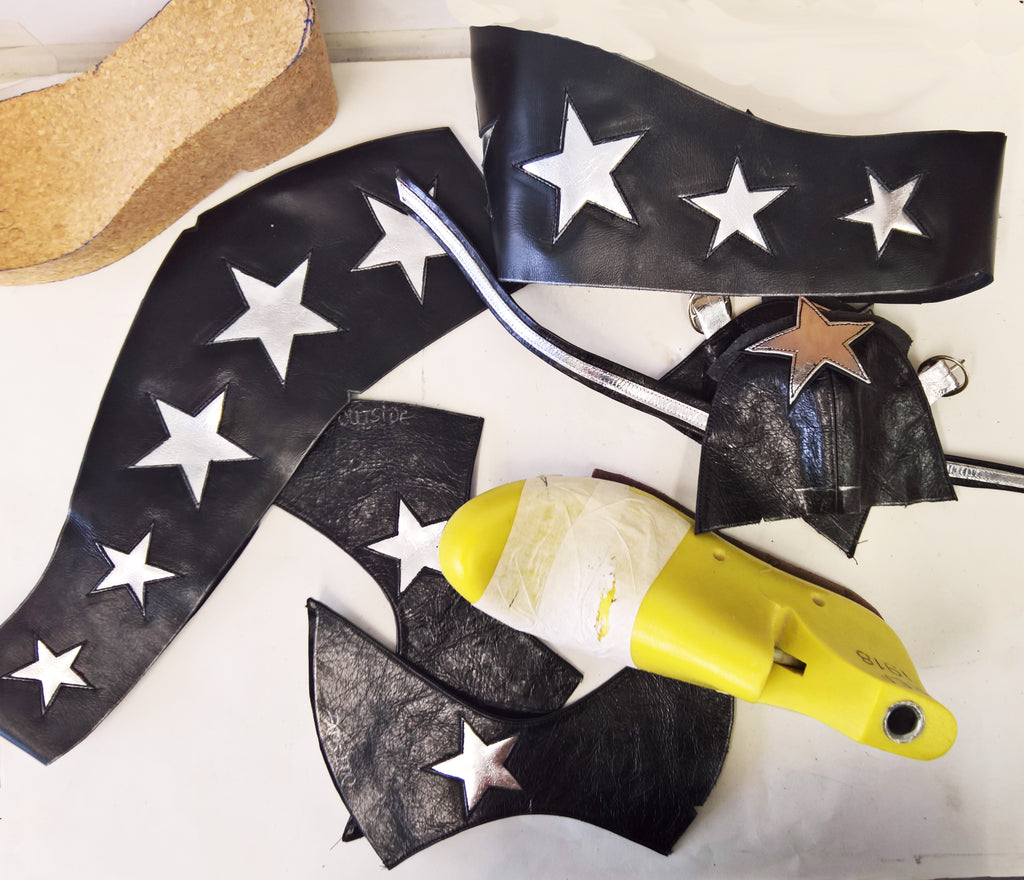 Silver Star appliques on top of toes and in-and outside of wedge and back of foot (total 9 stars per shoe)