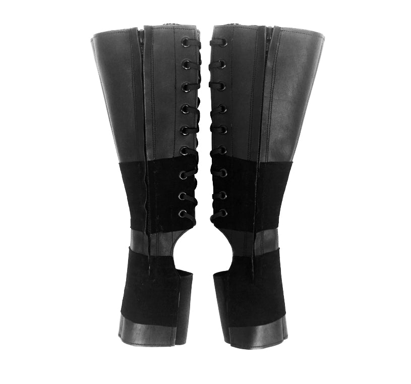Black full length Aerial boots with side Zip + Suede panels for grip